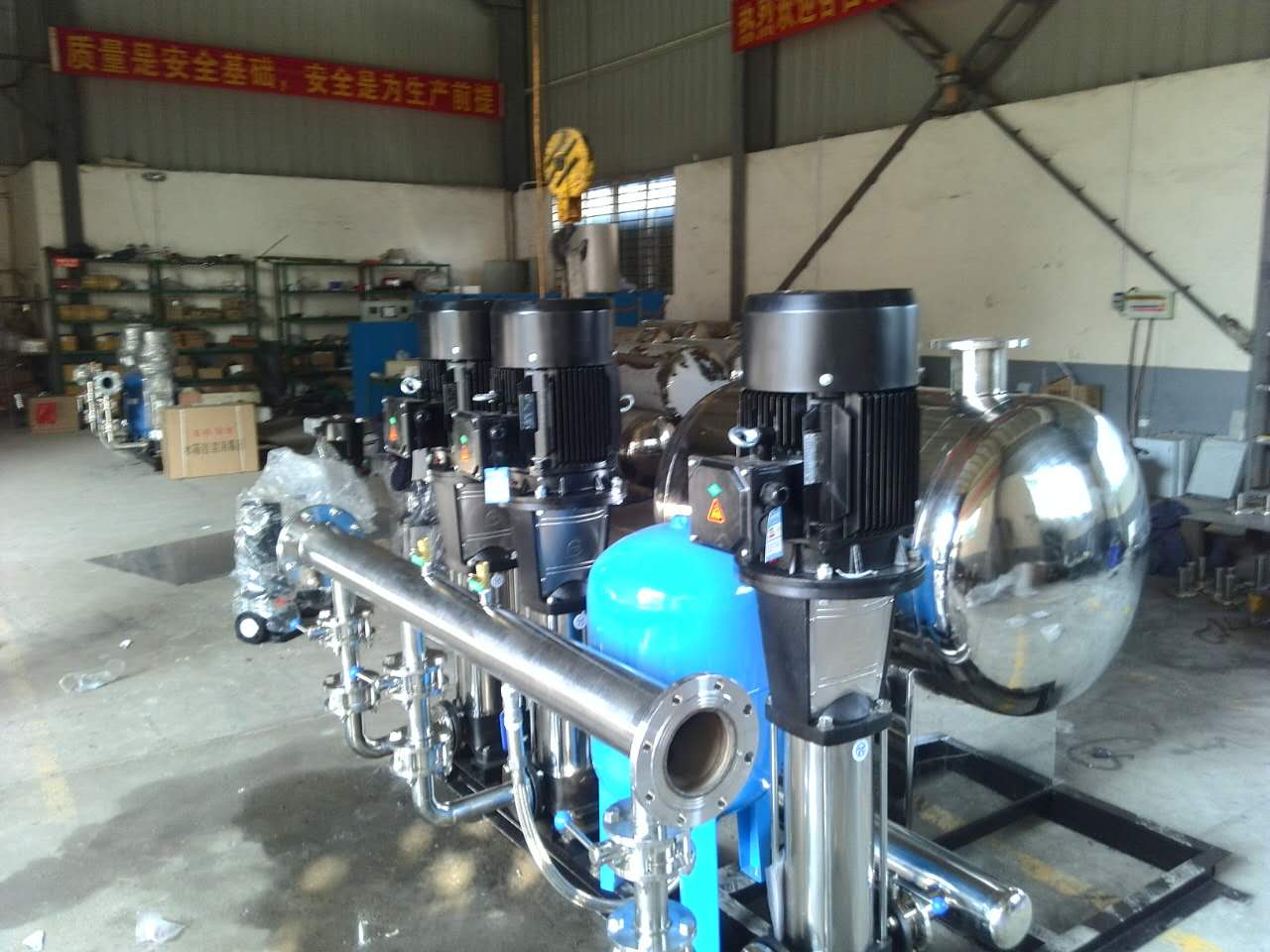 該項目設計流量為130立方每小時,揚程40米,配3臺5.5kw變頻泵。該項目如今已經正式運行。
